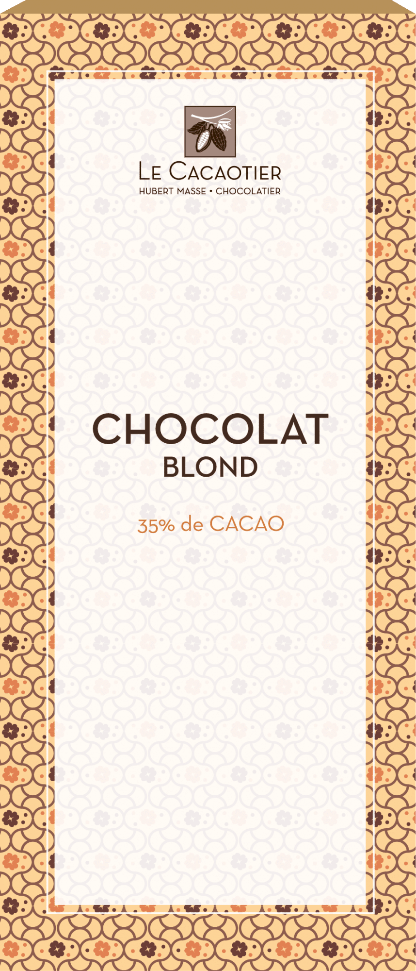 Le chocolat blond est souvent surnommé le "quatrième chocolat". Il s'agit en réalité d'un chocolat blanc (élaboré à partir d'un beurre de cacao de grande qualité) qui a été très lentement chauffé et caramélisé. Chez Le Cacaotier, notre tablette à 35% de beurre de cacao adopte naturellement cette belle couleur dorée. C'est un processus délicat qui exige toute la précision et le savoir-faire de notre artisan chocolatier, Hubert Masse.